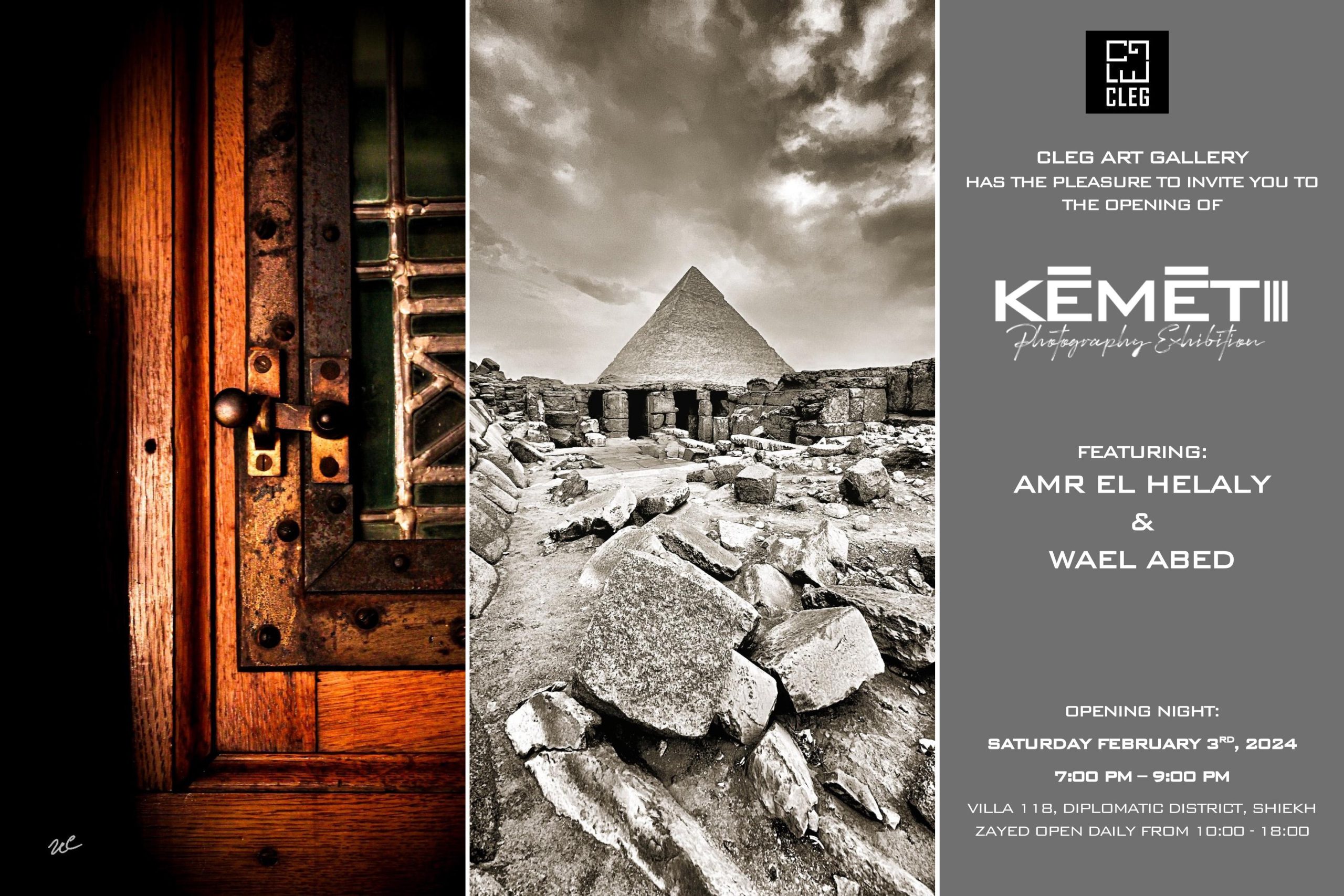 CLEG has the pleasure to invite you to the photography exhibition “ Kēmēt III ” featuring Amr El Helaly & Wael Abed. Opening night Saturday , February 3rd from 7 to 9 pm. Exhibition will run until February 20th. Open daily from 10-6 pm.